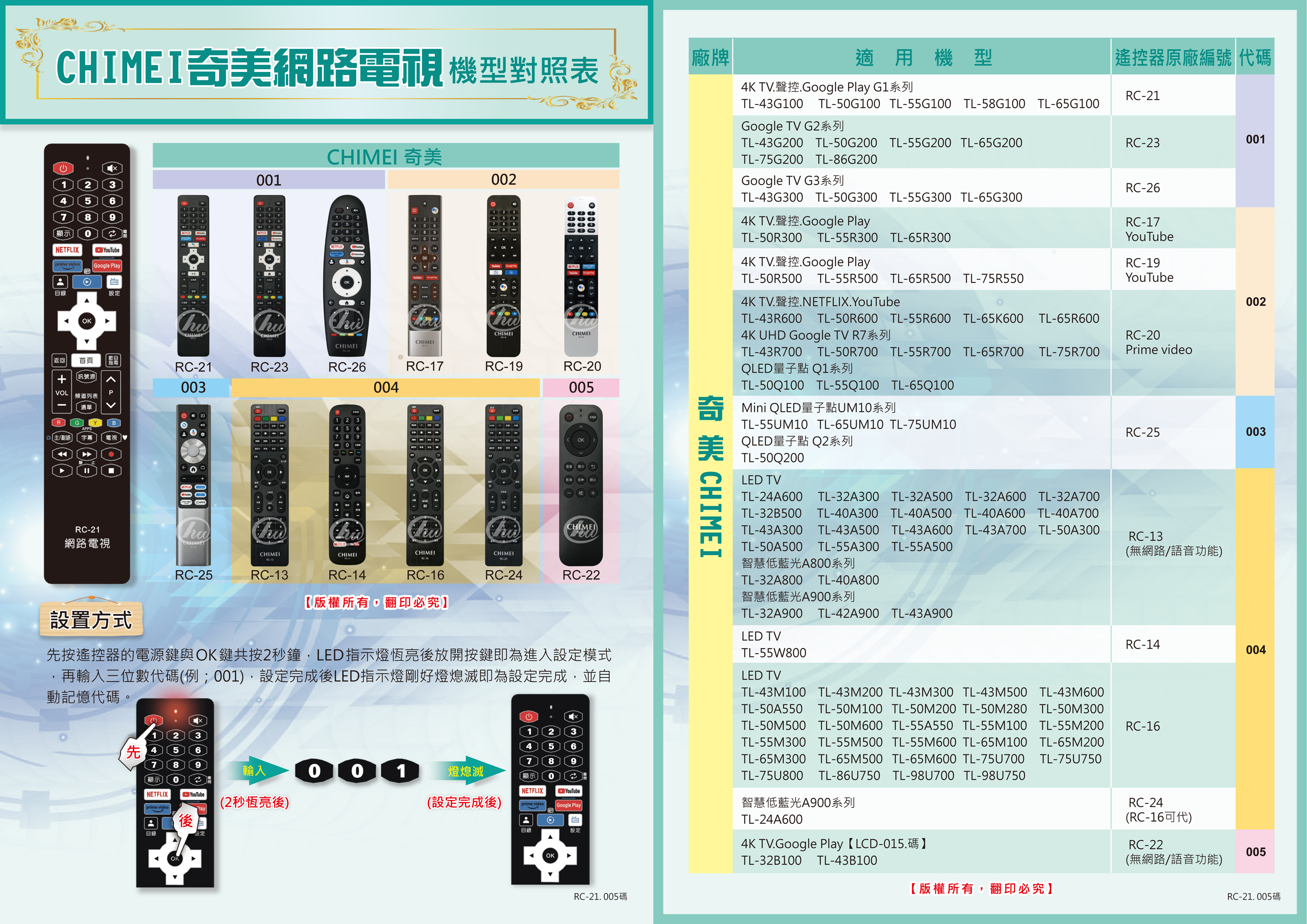 6.網路電視專用型遙控器 -- RC-21奇美說明書