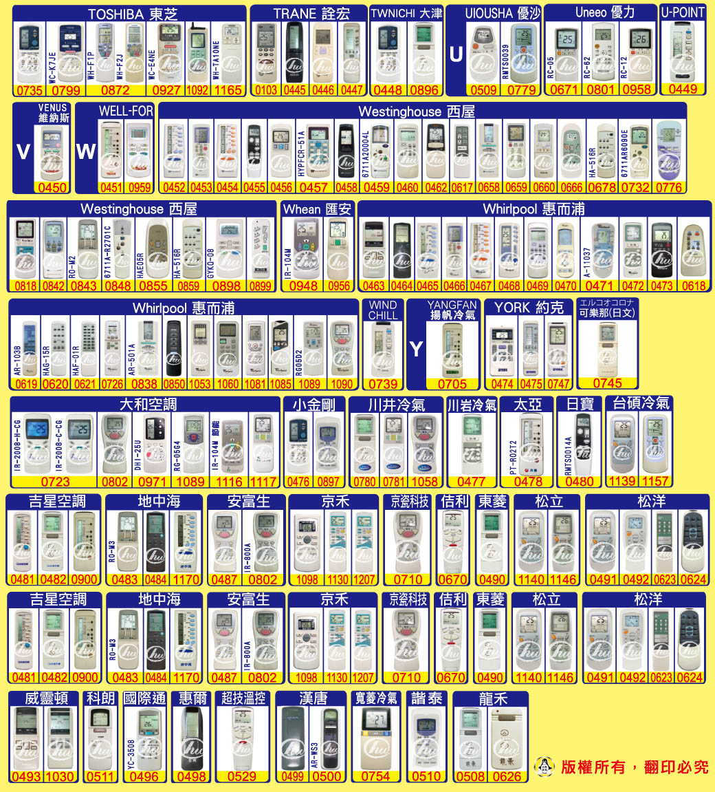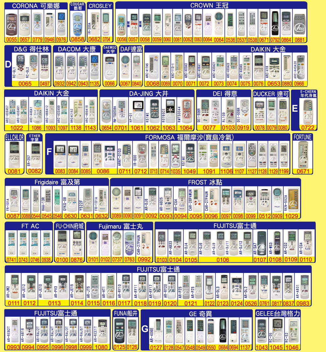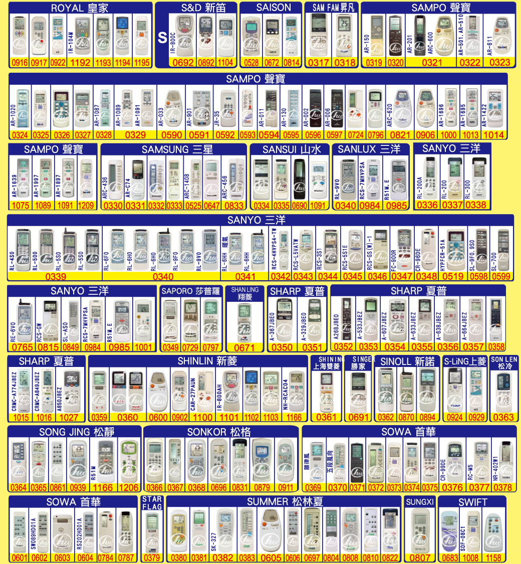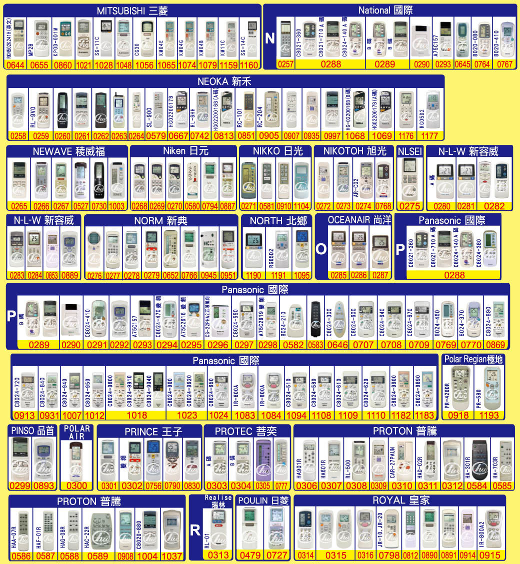 產品介紹/遙控器-分離式冷氣機/窗型冷氣機/直膨冷氣機 > 萬用廠牌冷氣遙控器