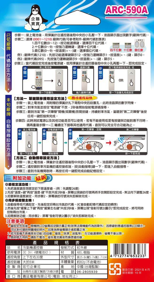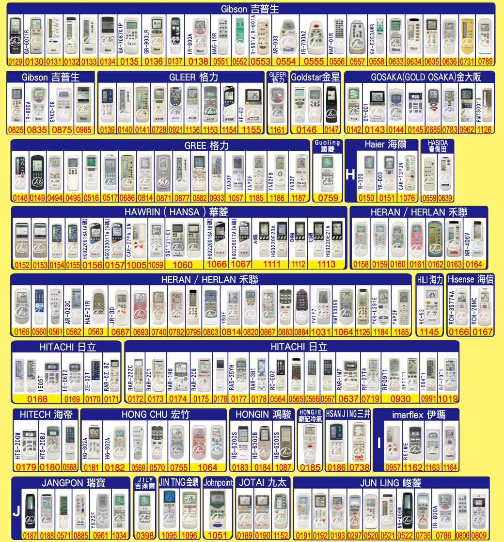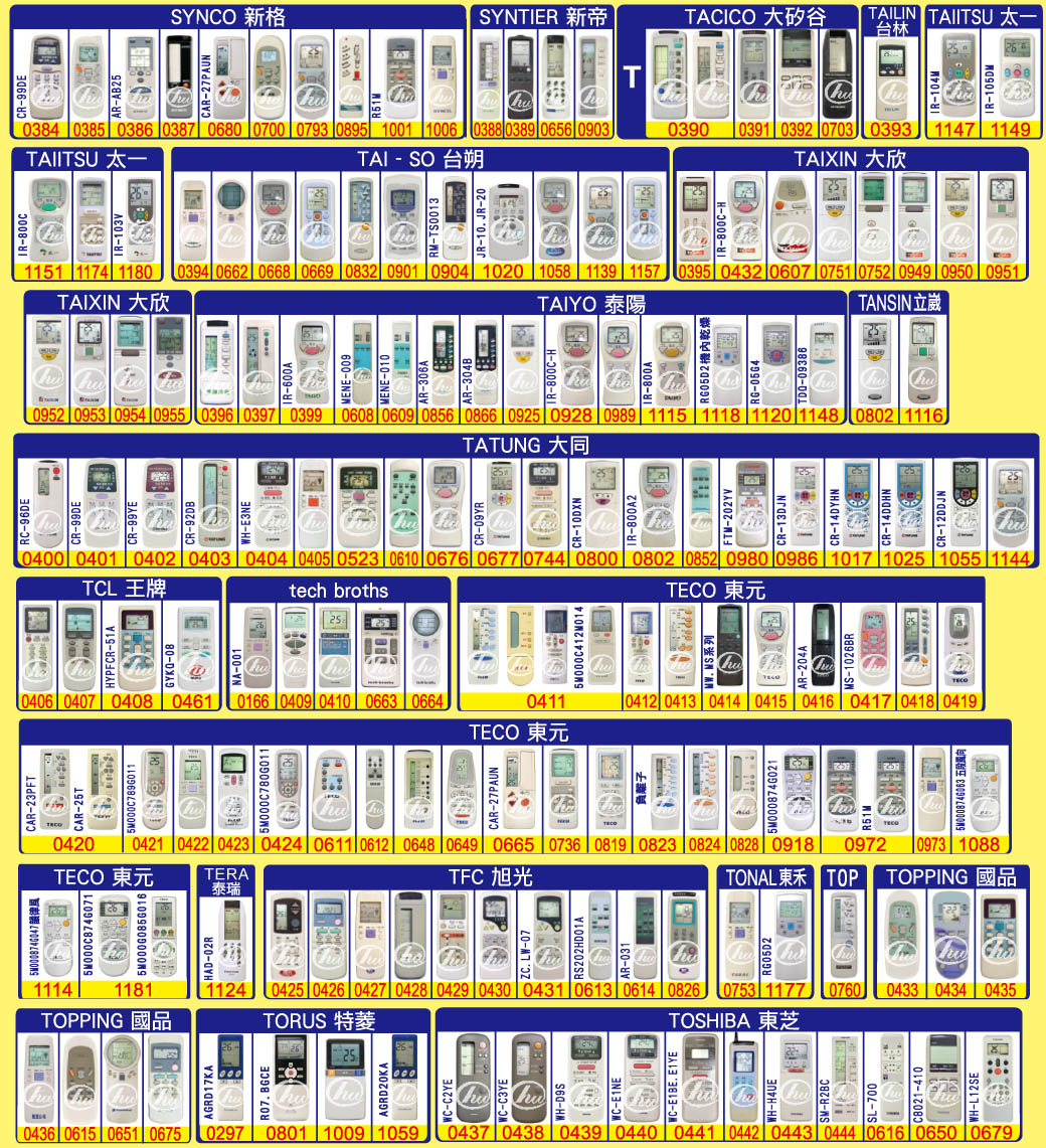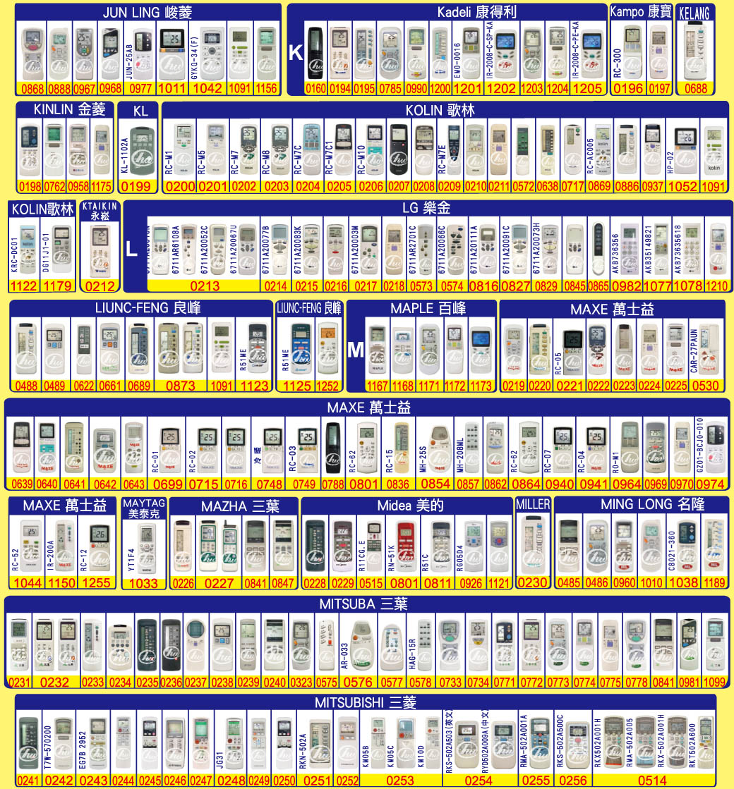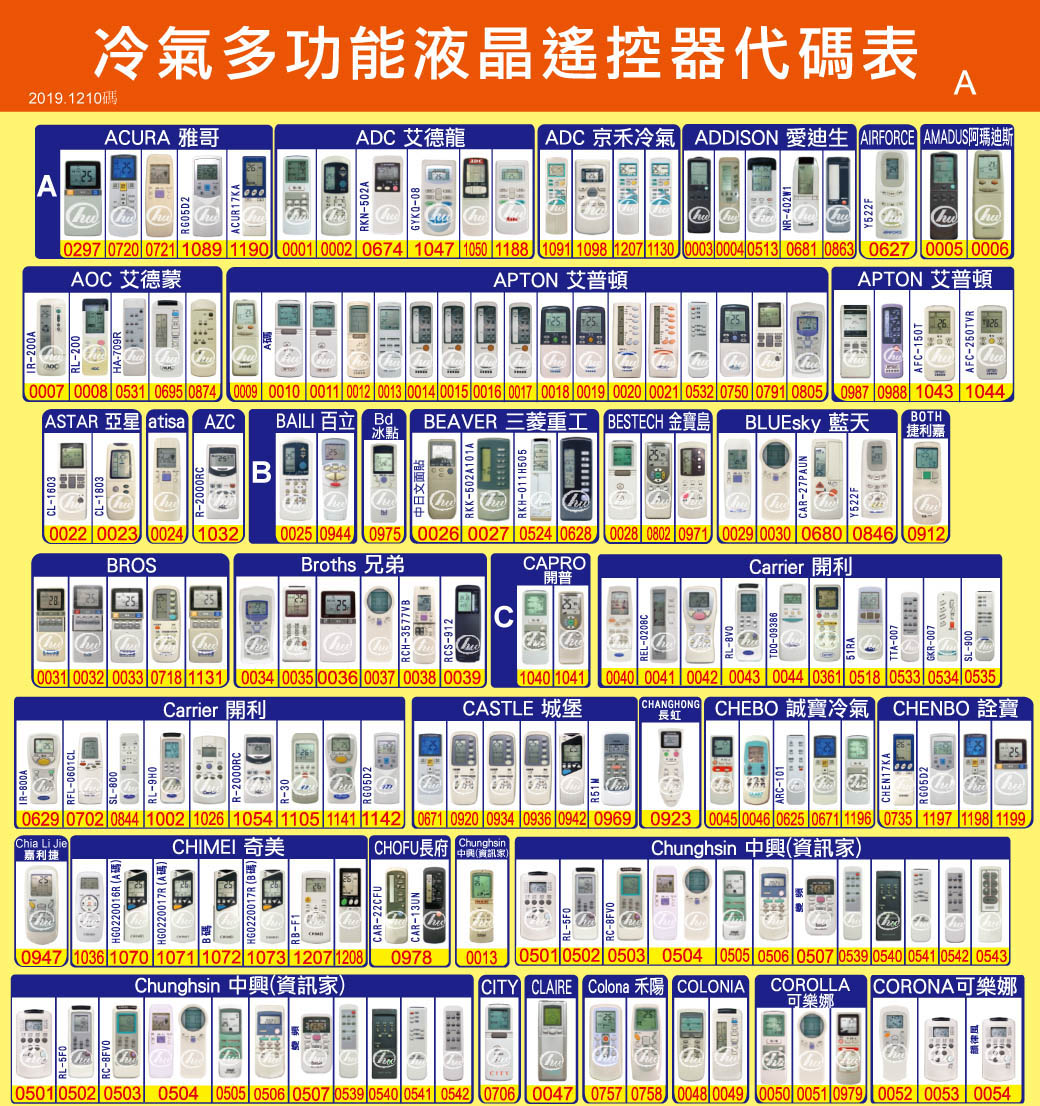 產品介紹/遙控器-分離式冷氣機/窗型冷氣機/直膨冷氣機 > 萬用廠牌冷氣遙控器